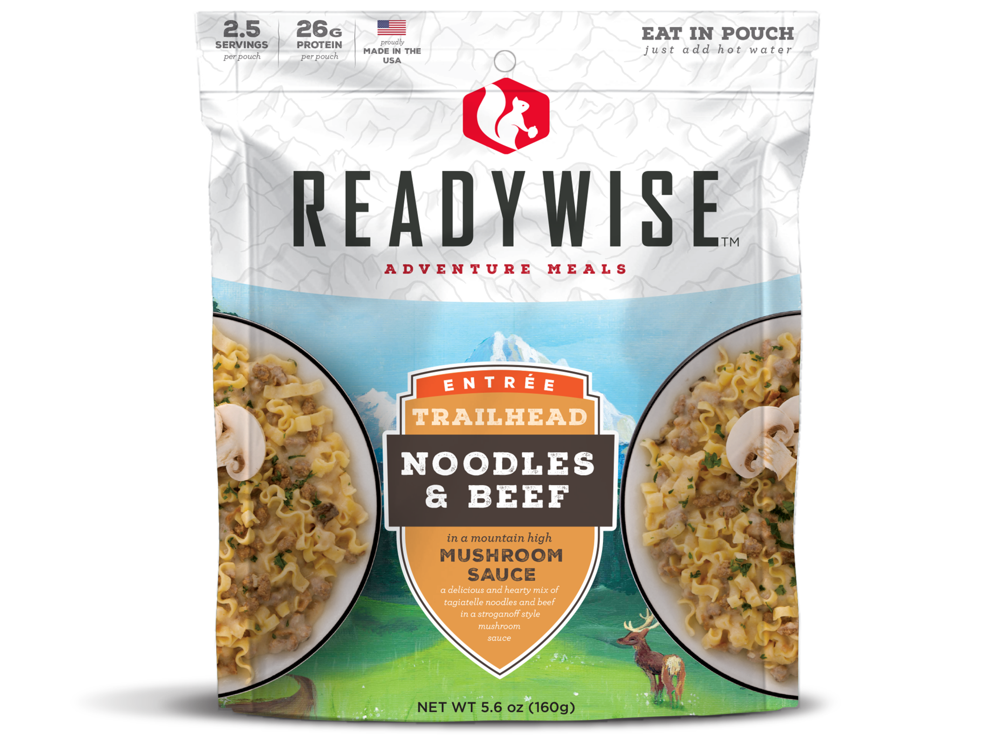 Each pouch of Trailhead Noodles with Beef contains 2.5 servings and is resealable. These pouches are lightweight making the easily portable for any outdoor adventure. Just add water and you can eat directly from the pouch.